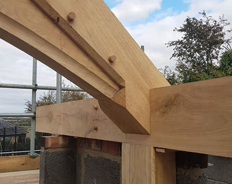 Green Oak frame designed and erected by Hobbans Timberworks.