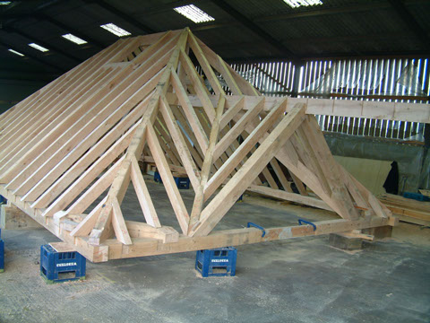 An extension with a mansard roof. The client started planning for this in the 1990's. We were appointed to design the frame in 2019 and to build and erect in Spring 2020 as soon as Covid-19 safe working would allow.
