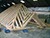 Oak roof frame for feature design in a new kitchen extension. With moulding to the bracing and main trusses.