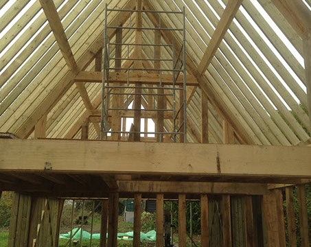The Cider House. New Build oak frame house, structrual frame only, supplied and erected. Client's own architect & engineer Ashley Largent.