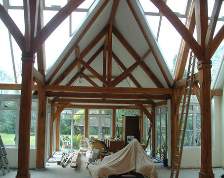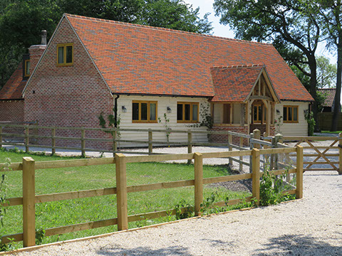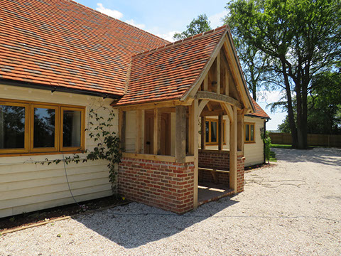 The Cider House. New Build oak frame house, structrual frame only, supplied and erected. Client's own architect & engineer Ashley Largent.