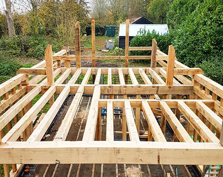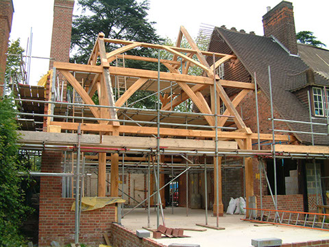 An extension with a mansard roof. The client started planning for this in the 1990's. We were appointed to design the frame in 2019 and to build and erect in Spring 2020 as soon as Covid-19 safe working would allow.