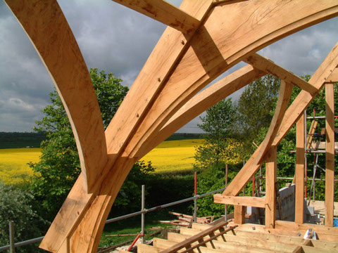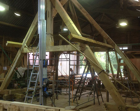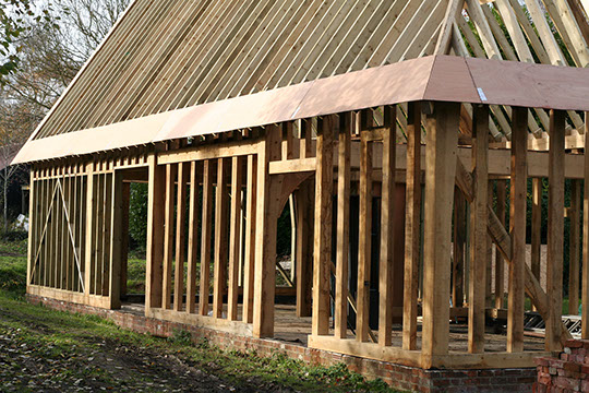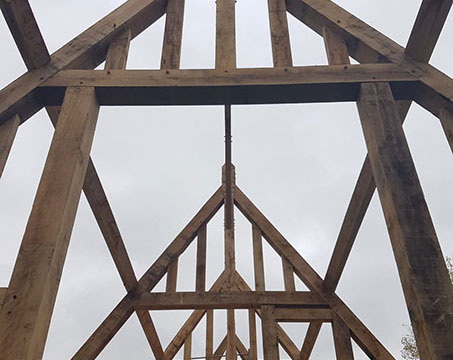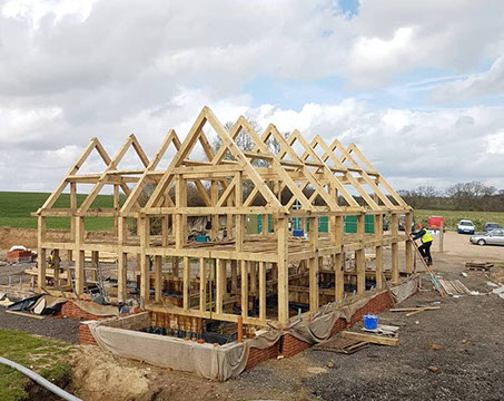Green Oak frame designed and erected by Hobbans Timberworks.