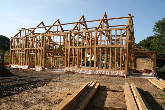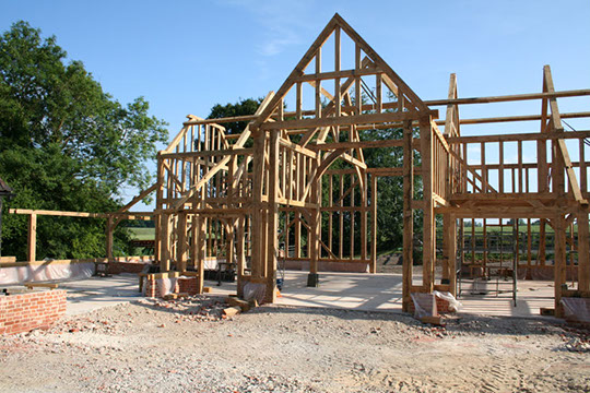 A new green oak frame with floor beams to allow the later insertion of a first floor if required.